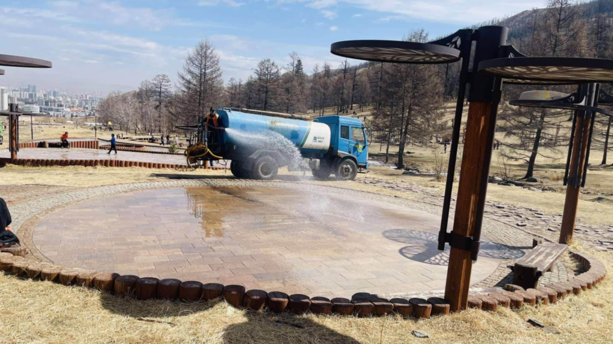 -Мөн Дугуй цагаан амралтын бүсийн хүүхдийн тоглоомын талбай, явган зам талбайд чийгтэй цэвэрлэгээ хийж, хогийн сав байрлуулсан бөгөөд нийтийн ОО хэвийн ажиллаж байна.